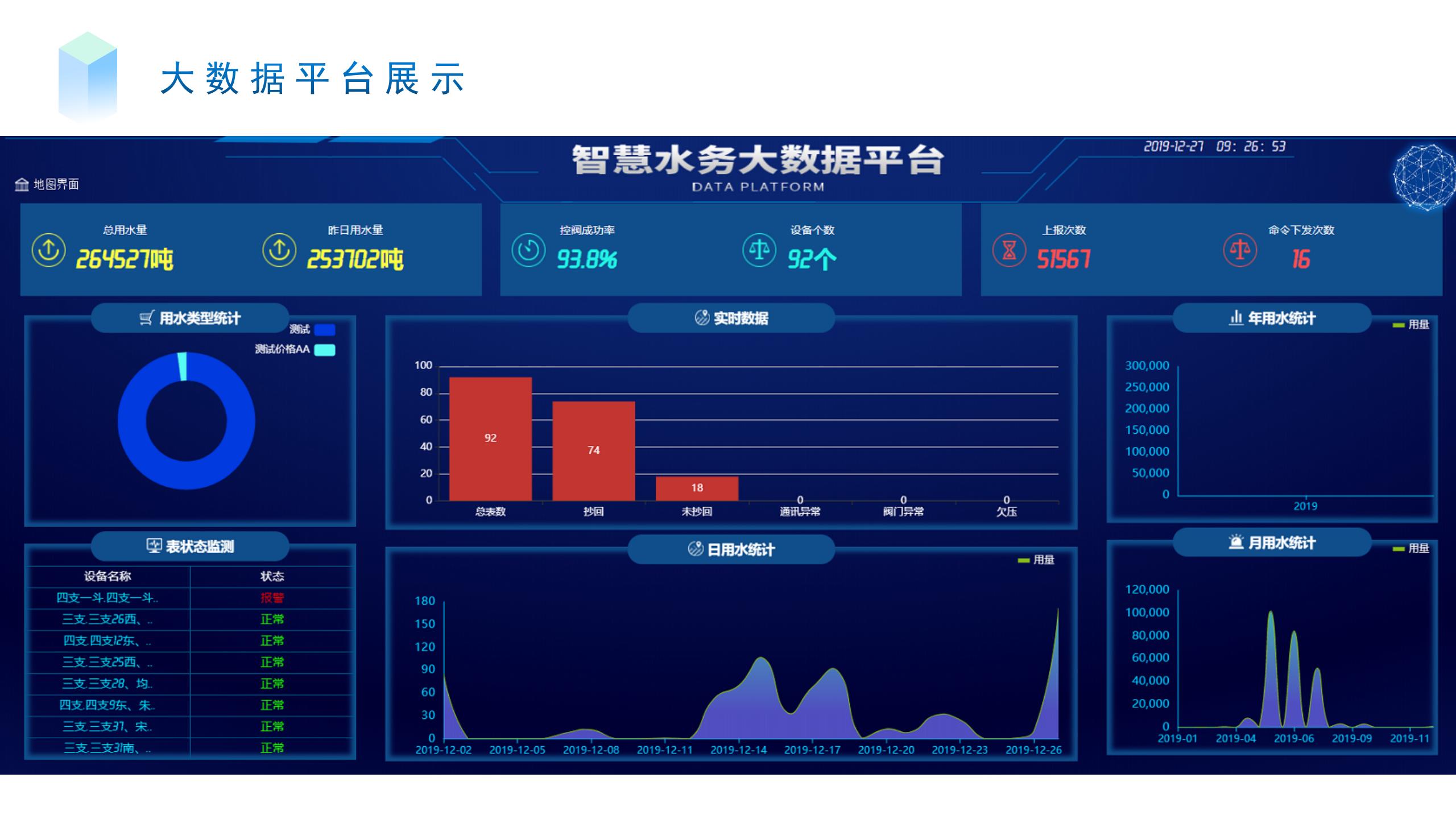提升水務(wù)管理決策的科學化水平,利用大數(shù)據(jù)分析能力提升各類業(yè)務(wù)應(yīng)用場景的識別、判斷、管控、執(zhí)行水平,為水安全、水資源、水環(huán)境等決策提供輔助支撐。
