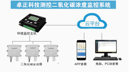 室內(nèi)二氧化碳變送器起到實(shí)時(shí)監(jiān)測的目的,它將數(shù)據(jù)傳送環(huán)境監(jiān)控主機(jī),通過小主機(jī)將數(shù)據(jù)上傳至云平臺(tái),用戶通過登錄卓正科技云平臺(tái)查看辦公室內(nèi)的二氧化碳濃度變化。